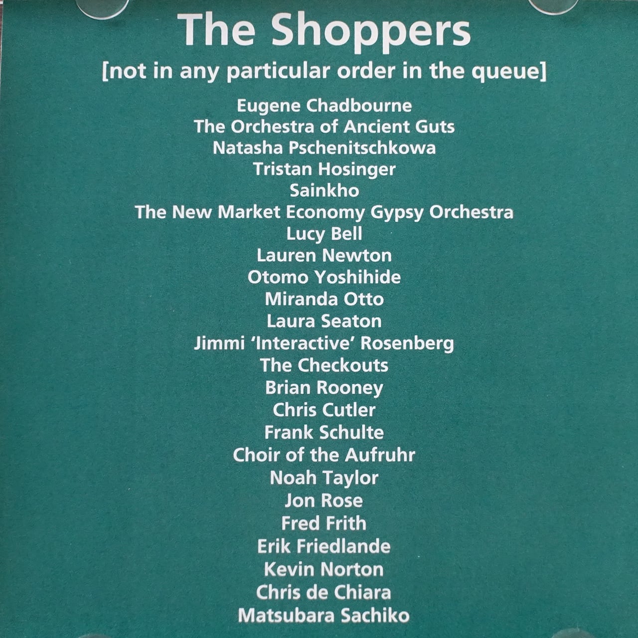 オーストラリアを拠点とする前衛バイオリニスト・作曲家、ジョン・ローズによるコンセプト・アルバム。 商業主義やショッピング・モールのBGMに対する痛烈な風刺とパロディをテーマにしています。主な参加アーティストは、フレッド・フリス、クリス・カトラー、大友良英、トリスタン・ホンシンガー。