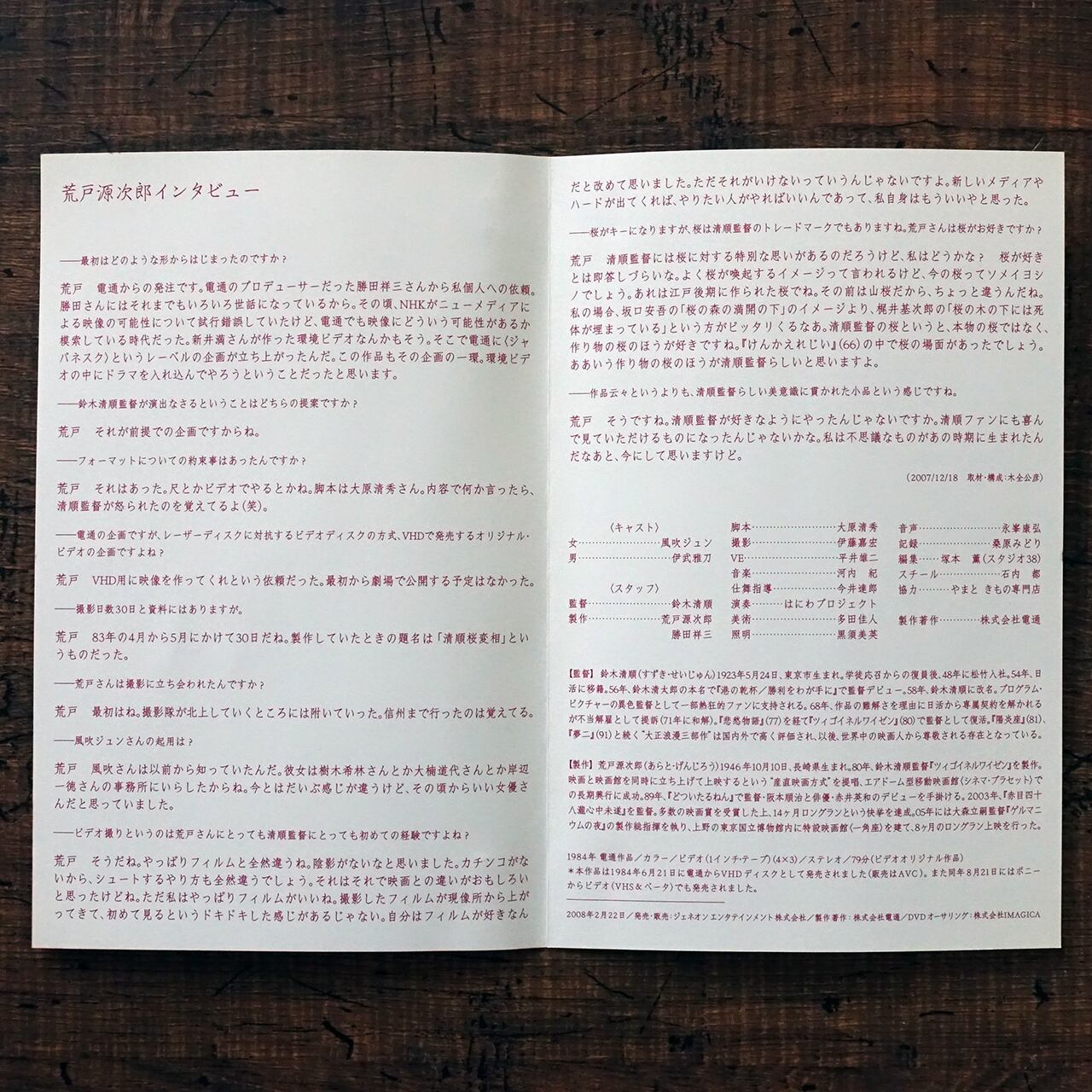 荒戸源次郎プロデュース、鈴木清順監督のVHDディスク用に作られたビデオ作品。