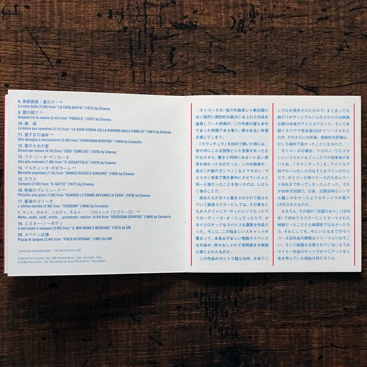 映画音楽作曲家エンニオ・モリコーネのレア・サウンドトラックを収録した全40トラック2枚組のベストアルバム。解説小冊子付。