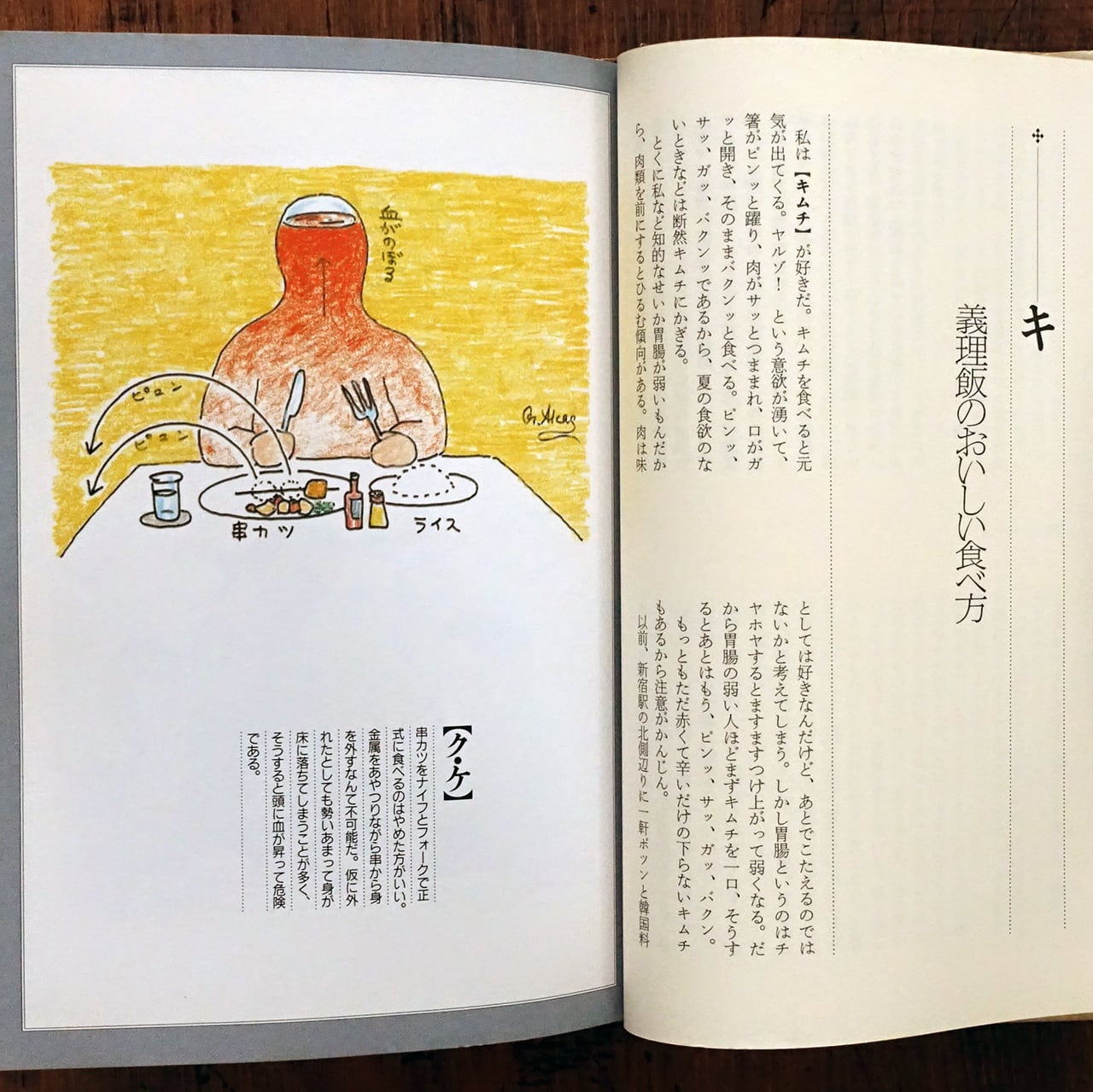 芥川賞作家の尾辻克彦(赤瀬川原平の別名義)が文を、前衛美術家の赤瀬川原平が絵(挿絵)を担当した、食べ物や食材について、50音順に辞典形式で綴られたエッセイです。