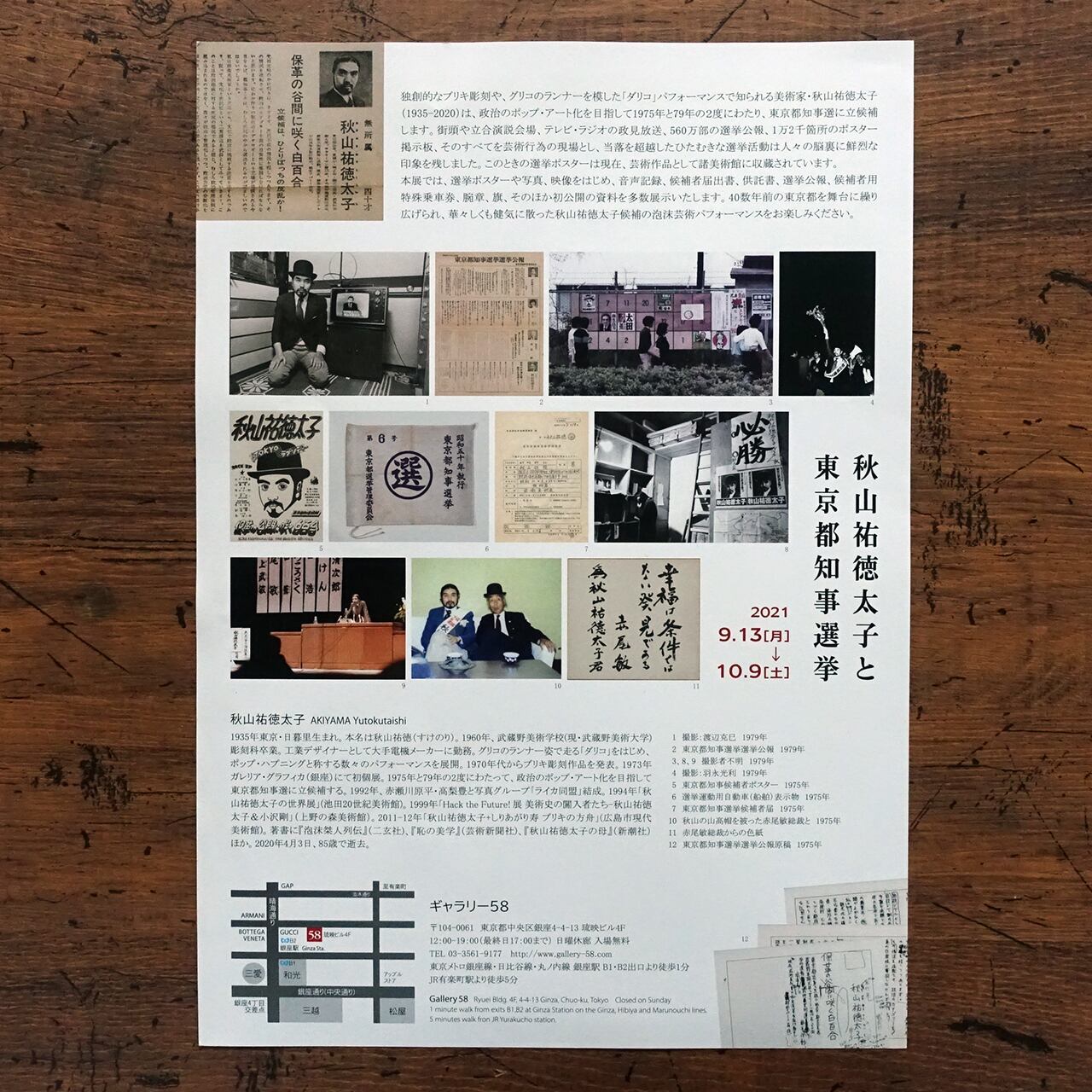 [エフェメラ] 「秋山祐徳太子と東京都知事選挙」ギャラリー58 チラシ
